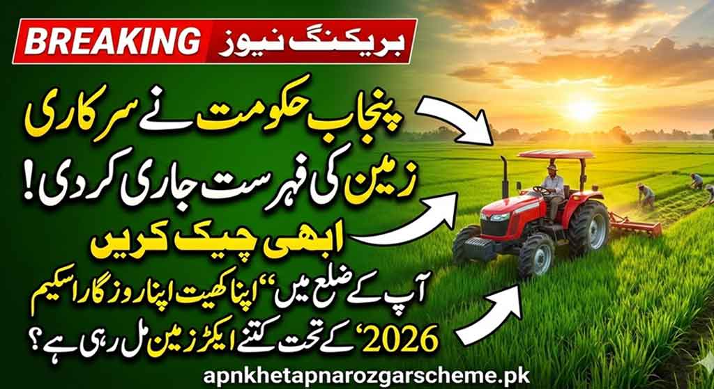 The Apna Khet Apna Rozgar Scheme is set to launch this week of February 2026. The Chief Minister of Punjab has announced that the government will provide free agricultural land of 2.5 and 5 acres to landless citizens of Punjab. Information about the available agricultural land is being uploaded on the official Agriculture Department website agripunjab.gov.pk as well as the Punjab Land Records Authority (PLRA) website www.punjab-zameen.gov.pk.